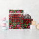 Papel De Presente Xadrez vermelha russa com detalhes de rosa de aqua