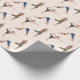 Wrap gifts with this yoga themed wrapping paper designed by Destei. The design features a light beige background with repeating illustrations of yoga women in different poses. One flows into dancer pose, another holds downward facing dog and the third balances in tree pose. Each wears a different outfit with color combinations of pink and black, blue and white, and green and brown. The beige background keeps the design clean and balanced while the illustrated poses bring movement and energy to the pattern.