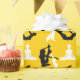 Várias raparigas vetoras de ioga a preto e branco formam um padrão de captura de olhos contra este fundo amarelo mostarda.