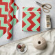 O padrão de natal na moda apresenta zigzags verticais vermelhos e verdes de menta alternados, separados por bordas brancas finas neste padrão geométrico em negrito. Imagem criada digitalmente. Copyright © 2013 Claire E. Skinner. Todos os direitos reservados.