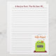 Receba papel com linhas opcionais, que podem ser removidas. Em baixo, há uma ilustração de um fogão verde inspirado por um pote cor de laranja no queimador frontal esquerdo. O texto de cima diz "Uma Receita Da Cozinha De..." Personalize com seu nome acima do fogão na parte inferior. Procurar o classificador de receita correspondente