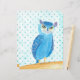 A coruja azul e roxa, bonito, em fundo de bolinhas turquesa, é branca, divertida e azul e roxa, impressa na frente e atrás das folhas de papel de 8,5 x 11 polegadas. Escolha do excelente para o rascunho e artesanatos de papel, além de artigos de papelaria. Obrigado por comprar no ScrapbookBackground no Zazzle.