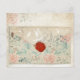 Um belo design em estilo de colagem, usando um envelope antigo, padrão de rosa desbotada e pombas brancas em um fundo com efeito envelhecido.