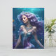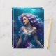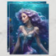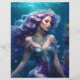 Uma bela sereia com cabelos roxos em cascata no oceano.