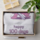 Design bonito com um axolotl vestindo uma mochila e segurando uma grande caneta com a citação "Feliz 100 dias de escola". Feliz 100º dia de escola ou jardim de infância.