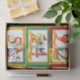 Este adorável papel de tecidos de Natal apresenta 1 papagaio em uma pera, 2 pombas de tartaruga, 3 galinhas francesas, 4 chamando pássaros, 5 anéis de ouro, 6 gansos por postura, 7 nadadores, 8 moças por ordenha, 9 moças dançando, 10 lordes saltando, 11 pipers e 12 bateristas batendo cada um em uma moldura decorativa. Perfeito para aqueles presentes de férias.