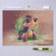 A look full of charm and adventure, the cute turtle. It has large, expressive eyes, accentuated by long, curled eyelashes, giving it a charming and lively expression. Its dark shell is decorated with swirling patterns that convey dynamism and playfulness. The turtle's body displays a harmonious blend of warm red and orange tones, radiating warmth and friendliness.