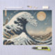 Esta design é uma interpretação impressionante de "A onda Excelente de Kanagawa", que permanece fiel ao seu estilo clássico e ousado. A imensa onda, amontoada e poderosa, ameaça engolir os barcos abaixo, enquanto o Monte Fuji se mantém em silêncio em contraste ao fundo. As linhas detalhadas e o movimento fluido da onda são emparelhados com azuis e brancos nítidos, invocando a energia e a tranquilidade da cena. Uma homenagem a um dos trabalhos de arte mais célebres do Japão, esse design é ideal para projetos que buscam capturar a força duradoura e a elegância da arte tradicional.