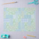 Uma folha do lenço de papel bonito, com uns retalhos do falso do estilo country de várias bolinhas florais e coordenando bonito da pervinca, padrões listrados e da xadrez em azul pálido, em verde e o branco. A parte da "da coleção fino e Painterly do remendo pervinca", este teste padrão pode facilmente ser ajustada para caber todo o lenço de papel.