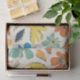 A playful, seamless repeating pattern featuring stylized multicolored flowers and leaves with textured, sketchy edges on a cream background.