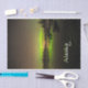 Decorado com a imagem da aurora borealis e as luzes da comunidade de Bodenburg Butte refletindo sobre o rio Knik no Alasca. Também tem texto que diz "Alaska Sigh...." Por Ted Raynor
