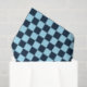 A blue and black checkerboard pattern with evenly spaced squares. The repetitive design creates a sense of symmetry and optical illusion.