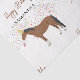 Uma bela ilustração de uma festa de cavalos e diversão! Cavalo vestindo chapéu de festa e soprando buzina de festa com confete chovendo nele. Que comecem as comemorações! Perfeito para quem adora ilustrações engraçadas de animais de celeiro, animais de fazenda, etc. Ideal para um presente de aniversário, decoração infantil, arte infantil de quarto, decoração doméstica, presente de Natal ou presente para qualquer outra ocasião especial.