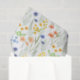 Este papel tissue apresenta um padrão de flor silvestre em aquarela em tons de verde, amarelo, laranja e azul.