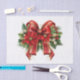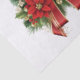 Papel tecidular com arco festivo de Natal em vermelho e ouro. Cercados por flores de poinsettia, pinheiro e decorações de Natal.