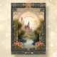 1 de 2 IMAGENS QUE COORDENAM, UMA COM O CASTELO 5B, UMA SEM 5A. Vintage Victorian Art Nouveau escrollwork, design de ouro arquitetado é emparelhado com um Castelo de Fantasia num lago com um brilho etéreo suave. A borda elegante está em uma cinza azul-marinho com poeira escura e úmida. O lago tranquilo atravessa um lindo jardim com flores roxas e adoráveis e rosa que acabam a cena. Suavemente melhorado pela efemera de escrita manual de scripts que é colocada sobre a imagem texturizada de fissuras. MSP0119