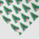 Antes de colocar aquele presente perfeito em um saco de presentes, embrulhe-o com um tecido decorativo. Este tecido tem um padrão de árvores de Natal verdes com ornamentos vermelhos e presentes na base. Disponível em três tamanhos, sete cores (branco mostrado aqui) e dois pesos de papel de 10 lb e 18 lb.