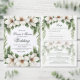 Celebre seu dia especial com este eterno e refinado convite para casamento, com flores brancas delicadas de magnólia, enquadradas por um pinho verde. A trabalho de arte botânica aquática traz um toque suave e romântico enquanto mantém uma sensação elegante e minimalista. Totalmente personalizável com os nomes do casal, data do casamento, local e detalhes. Ideal para casamentos no inverno, temas inspirados na natureza ou cerimônias de jardim do sul. Impresso em papel de alta qualidade e fácil de personalizar com suas fontes e cores favoritas.