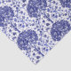 Lenço de papel em uma tomada de Nouveau da arte de William Morris "árvore em um teste padrão tradicional da vida", caracterizando as árvores da fantasia cercadas pelos ramos enchidos com as flores e os pássaros exóticos, as máscaras de azuis cobaltos ricos e o marinho profundo em um fundo branco