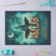 Attractive & Mystical Halloween Witch Conjures Enchanting Spells Amid Glowing Candles And Vibrant Pumpkins Under A Moonlit Teal Sky Tissue Paper for Decoupage.