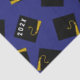 Tocas de formatura criativas pretas e douradas em fundo azul. Edite o texto para personalizar para seu graduado favorito.