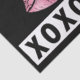 Este design de papel de tecido personalizado apresenta um fundo preto com uma banda branca de texto XOXO preto e gráfico de beijo de batom rosa.