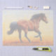 Cavalo selvagem da baía que corre sobre um campo de prado seco. Trabalho de arte realista criada de uma pintura original de óleo pelo artista equino e da fauna selvagem Crista S. Forest.