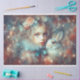 This charming watercolor design features a dreamy portrait of Alice standing beside the ever-rushed White Rabbit, set against a swirling pastel backdrop. Soft washes of blue, peach, and blush create a whimsical atmosphere filled with motion and magic. Ideal for fantasy decoupage, journals, or imaginative wrapping paper, this tissue captures a gentle moment of curiosity and friendship. The portrait-style layout makes it perfect for focal pieces in mixed media or keepsake crafts. A delightful nod to timeless storytelling and wonder. Explore more whimsical fantasy designs in my Alice In Wonderland tissue paper collection!