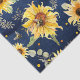 Bee w Sunflower Floral Rustic Marinho Wood Decoupage Papel Tecido de Decoupage em peso pesado, excelente para decoração de móveis pintados, artesanato ou uso de embrulho de presente. Esta versão tem como fundo de madeira azul-marinho pintado com de cor aquosa, com girassóis cada vez menores, espalhados junto com folhagem de folha de eucalipto e verde-férn seco. Audrey Jeanne Roberts, uma artista e designer internacionalmente licenciada, criou isso em um estilo solto e pareceria. Direitos autorais, todos os direitos reservados.