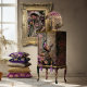 "Sentado Bonito", Beleza Faisão, Pássaro em uma ramificação, Florais Moosos e Russos, Mídia Digital Mista, Arte de Colagem Composta, Papel Tecido de Desvinculação.