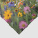 A charming tissue paper design featuring a pastel blue bicycle with woven baskets overflowing with vibrant wildflowers, set against a whimsical garden backdrop. Ideal for spring gifts, floral boutiques, or vintage-themed packaging.