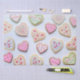 Cookies de coração dia de os namorados em um fundo azul com afirmações e decorações 100% personalizáveis. Clique no botão PERSONALIZAR para adicionar, mover, excluir, redimensionar ou alterar qualquer uma das fontes ou gráficos.