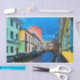Devyatkin (nona) pista de Moscou. Uma pista curta no centro histórico da cidade. Nada especial, exceto cores. Claro que me lembro, foi no dezembro sombrio. O dia sombrio de dezembro foi iluminado pelas paredes de prédios antigos. Usei textura de canvas para adicionar velocidade a esta paisagem urbana.
