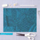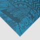 Detailed and ornate abstract pattern drawn in black ink on blue background.