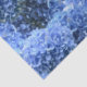 Blue floral tissue paper. Realistic, light blue hydrangea flowers cover the paper, which comes in a variety of sizes. Beautiful flowers are perfect for wrapping a birthday, graduation, wedding, or baby gift. Bride's will love this paper for use in favor boxes and gift bags.