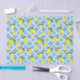This tissue paper features a watercolor French country tile and lemon pattern in blue and yellow.