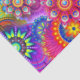 Papel de tecido de impressão de abstrato boêmia. Nas cores azul, rosa, laranja, verde, azul, amarelo e roxo.