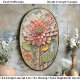 An intricate boho inspired flower design with dimensional petals in warm terracotta, blush pink, and ivory tones, set against a textured shabby chic background of teal, bronze, and distressed beige. The layered detailing and embossed foliage give it an artisan, hand crafted look, making it ideal for romantic and vintage inspired projects. Artwork similar to a mixed media painting with raised relief textures…..COLOR COMBINATIONS: