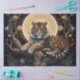 Enrole seus presentes ou crie artesanatos de dissociação exclusivos com esse papel de tecido tigre inspirado na Boêmia. Este papel de lençol d'água digitalmente criado apresenta um tigre espiritual solto aninhado numa árvore mística, cheio de flores brancas. Uma lua lunar pega o fundo. Este trabalho de arte de IA foi criado por Susang6.