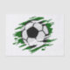 Um gráfico legal de uma bola de futebol preto e branco sendo retalhada, rasgada e rasgada com um fundo verde. *As cores podem ser personalizadas clicando no link Personalizar mais.
