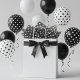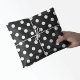 Papel tecidular com bolinhas brancas sobre fundo preto.