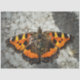 Uma borboleta pequena Tortoisesinfernal seca suas asas ao sol na superfície rachada. Design de fotos de aniversário de borboletas para desligar móveis.