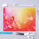 Formas de borboleta vermelha e amarela e desenho abstrato.