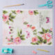 Lindo papel de tecido de desacoplamento, com borboletas e flores variadas, com texto que diz: de manhã a manhã, novos compaixões, eu vejo. As cores predominantes são cor-de-rosa, laranja e verde.