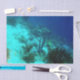 Uma cena subaquática na borda de um recife raso, onde o fundo do mar comece a se inclinar para baixo a uma profundidade maior.