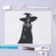Este trabalho de arte digital cativante retrata uma bruxa poderosa num vestido preto elegante com olhos vermelhos brilhantes e um chapéu elegante de bruxa.