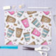 Um padrão bonito, divertido e adorável com xícaras de café, grãos de café e corações. Presente moderno e moderno, perfeito para o amante do café em sua vida.