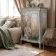 Campo de sonhos Retrato e Parasol Românticos, Azul leve e empoeirado, Verde de senhorita e bege, Papel Tecido de Decoupage. Nota. Visite o meu compro para os lados correspondentes a este triptych, conjunto 3.