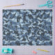 A camuflagem tornou-se uma tendência e aparece em cores de chamada. Este azul ficará fabuloso em tudo para... de papel de tecidos a tênis... desvinculação ou empacotamento de presentes.