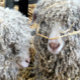 Um design fotográfico de duas cabras angorais muito bonitas com decoração de palha.